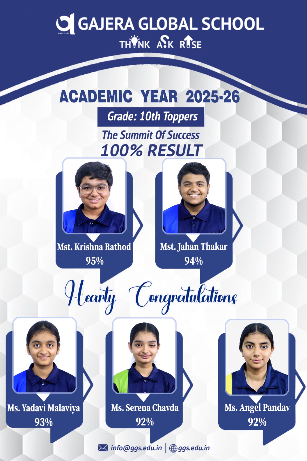 The school environment reflects high standards of quality and efficiency, providing learners with the best resources to thrive. Regular assemblies offer learners a platform to express themselves and build confidence, while the practice of performing Havan fosters a connection to cultural traditions. At Gajera Global School, we inspire learners to aim for the sky while staying rooted in their cultural values, guided by our vision to Think creatively, Ask curiously, and Rise exponentially.